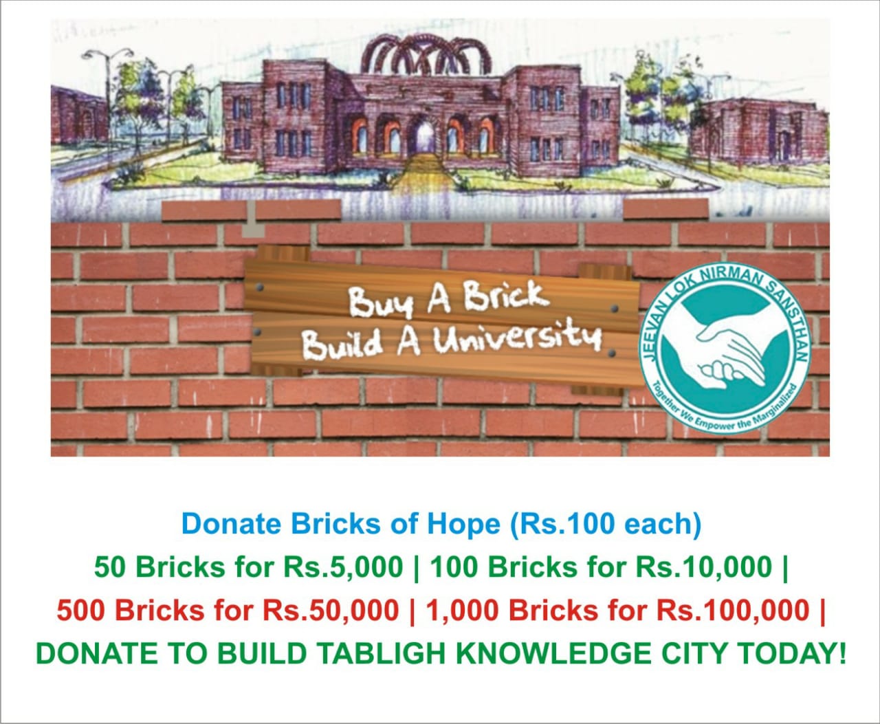 Rs. 1500 million INR is required to build the campus, we also add that anyone can contribute towards the construction of this university by purchasing a brick.